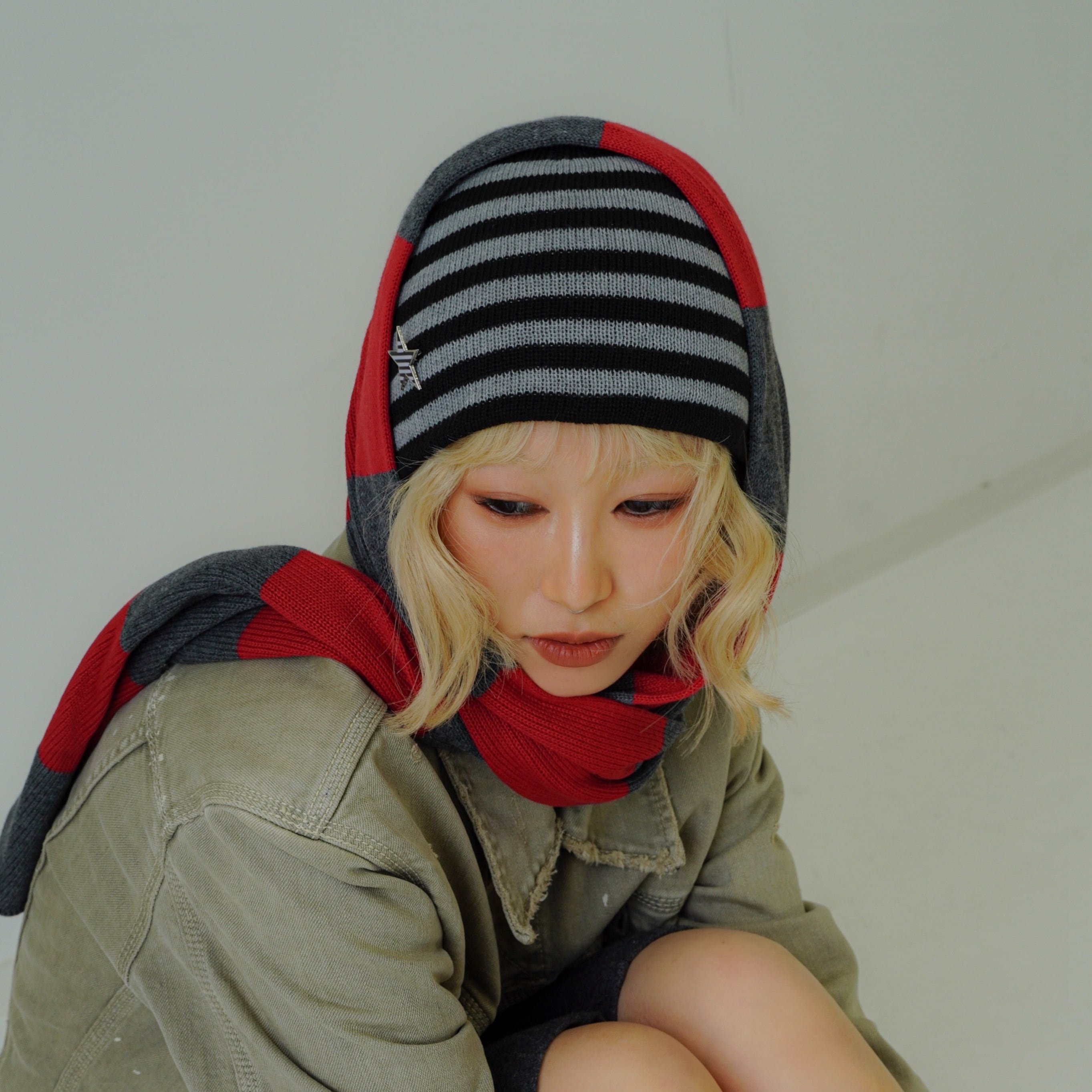 Border beanie 【Black × Gray】