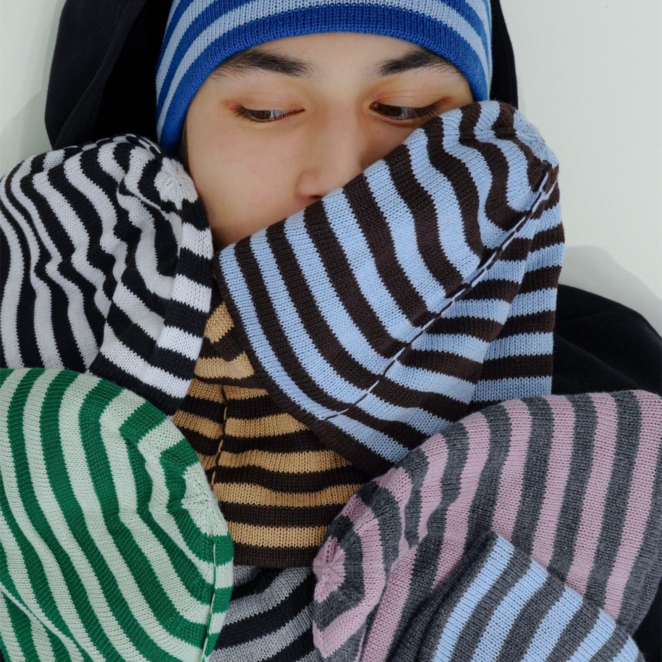 Border beanie 【Blue × Light blue】